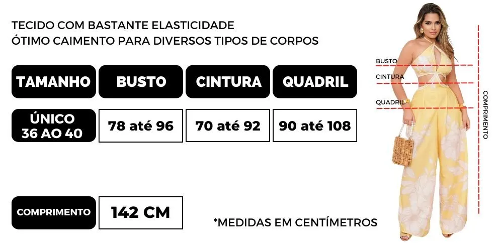 "Nota Importante: Este Macacão possui estampas únicas que podem variar ligeiramente em relação à imagem exibida. Devido à natureza do processo de fabricação, as estampas podem estar posicionadas de forma diferente em cada peça. Isso torna cada vestido verdadeiramente exclusivo e especial. Tenha em mente que a variação nas estampas é uma característica do produto e não um defeito. Agradecemos sua compreensão!"